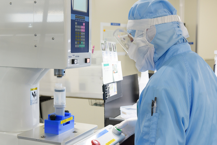 部品の納入から出荷まで、自社設計による様々な検査装置や計測機器等を使用して安全性や品質に関する確認を行っているほか、防菌防汚を徹底したクリーンルームも整備しています。